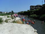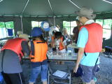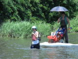 | 気象庁による梅雨明け宣言後、思わぬ天候不順の中、晴天に恵まれ実施された、埼玉県との共催事業の「川ガキ養成西部塾」の様子を報告いたします。 県と大学、NPO日本アーツセンター等、長期にわたり実施計画を作成し、草刈り、打ち合わせ、会場設定、漁協・おぶすま福祉会の皆様等との綿密な打ち合わせ、「川筋」の文化活動部会による’あめんぼライブ’の企画など行い当日を迎えました。 「夏の日差しの中、親子で水辺に親しみ、川での遊びを体験してみませんか? 小学校3年生〜6年生を対象に、県内5地域で、地域特性にあった川とのふれあいを通し、川に学び、川で元気に遊ぶ『川ガキ』を養成する地域塾を開催します。」 上記、時代の要請でもある「水辺に親しむ青少年の育成」という埼玉県の依頼を受け、「いるま川筋文化ネットワーク」の代表であり、駿河台大学土方教授が大車輪の活躍。 箱メガネをキット化して、ドライバー1本で組み立てられる状態にし、子どもたちに渡す。普段使うことのない工具に悪戦苦闘、完成すると、それを使って水中観察。 パオの中で顕微鏡にて生き物観察。(観察は伊藤先生を中心に学生ボランティアをお願いし行われました) カヌー部の学生をはじめ、多くの学生ボランティアをお願いしカヌー体験と、他地域と違った工夫で学びました。 青少年の育成40有余年の実績を携え、又、日本で唯一の車椅子カヌーを使い、乗降時の負担を感じることなく、障害のある子どもたちにカヌーを体験させました。 それは一緒にカヌーで遊ぶ子供たちと変わらず、流れに逆らい、補助員・学生の引くロープで川の上流へ向かい、心地よい川面を満たす風の動きを感じ、友の歓声を体に受け、指導者の日よけに守られながら、ゆったりと短い時間ではありましたが、豊かなひと時であったのではないでしょうか。 7月24日 パオ組み立て・・・代表はじめ会員、学生等で 7月26日 早朝よりカヌーの運搬・音響設備の準備 県よりの参加者50組の親子 学生等スタッフ80名 いるま川筋文化ネットワーク・あめんぼライブの関係者35名 アウトドア等一般参加者50名 総勢265名で行われました 埼玉県環境部水環境課長よりご挨拶がありました。 土方代表より挨拶 カヌー・水中観察・箱メガネづくり、三班に分かれ活動開始 顕微鏡生き物観察・・・伊藤先生及び学生スタッフ6名 3組がローテンションを組んで順次移行しました 昼食終了後、入間漁業協同組合の方3名の伝統漁法投網の実演がありました。 土方先生の計らいで、車いすのまま乗ることができる、障害者カヌーを2名(2家族)に実施いたしました。 「川筋」に申し込みがあった一般の参加者も2組、カヌー等の企画に参加致しました。 |